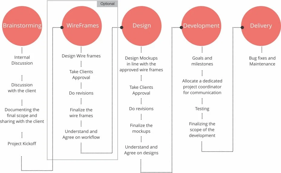 We build your website by understanding your requirements. We ensure to configure the best and suitable domain name, hosting providers, customized design and content. Furthermore, we build your website tailoring your needs, with SEO and speed optimization. The below screenshot shows the process flow that we follow at HBS.